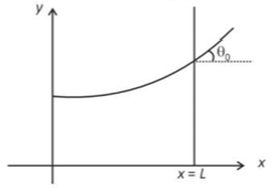 1. Consider a water tank shown in the figure.It has one wall at x = L and can be taken to be very wide in the Z direction.When filled with a liquid of surface tension S and density P, the liquid surface makes angle0.(0o <<1) with the x-axis at x = L. If y(x) is the height of the surface then the equation for y(x) is