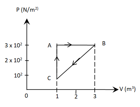 In process AB, 400 J of heat is added to the system and in process BC, 100 J of heat is added to the system. The heat absorbed by the system in the process AC will be