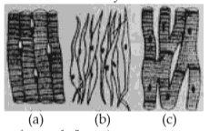 1. Three types of muscles are given as a, b, and c. Identify the correct matching pair along with their location in human body: