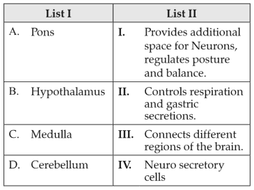 Statement II: The brain stem consists of the medulla oblongata, pons and cerebrum. In the light of the above statements, choose the most appropriate answer from the options given below :