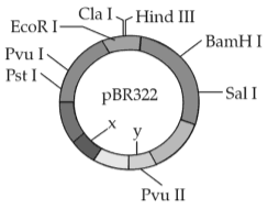 3. The following diagram showing restriction sites in E.coli cloning vector pBR322. Find the role of 'X' and 'Y' genes: