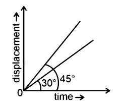 6. The displacement-time graphs of two moving particles make angles of 30∘ and 45∘ with the x-axis as shown in the figure. The ratio of their respective velocity is