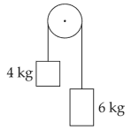 21. Two bodies of mass 4 kg and 6 kg are tied to the ends of a massless string. The string passes over a pulley which is frictionless (see figure). The acceleration of the system in terms of acceleration due to gravity (g) is