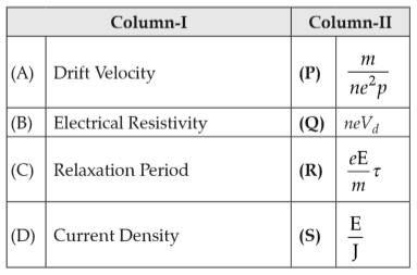 Column-I gives certain physical terms associated with flow of current through a metallic conductor. Column-II gives some mathematical relations involving electrical quantities. Match Column-I and Column-II with appropriate relations.