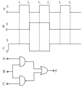 For the given circuit, the input digital signals are applied at theterminals A, B and C. What would be the output at the terminal y ?