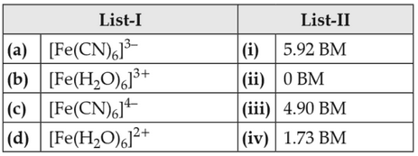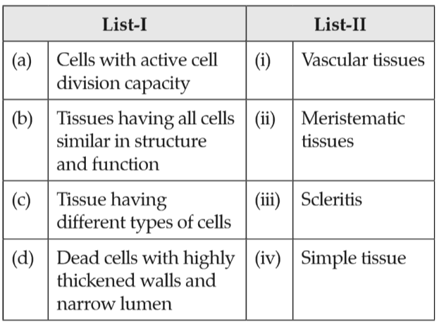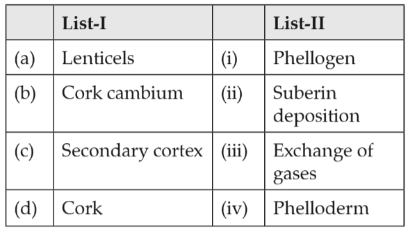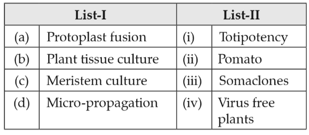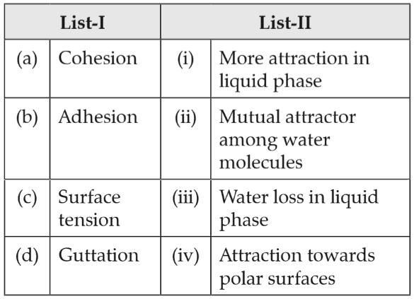 (a) - (ii), (b) - (iii), (c) - (i), (d) - (iv)