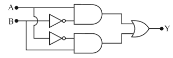 Physics+4 / −1In the combination of the following gates the output Y can be written in terms of inputs A and B as