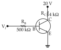 the input voltage \(V_i\) is 20 V , \(V_{BE}\) = 0 and \(V_{CE}\) = 0. The values of \(I_B\), \(I_C\)and β are given by