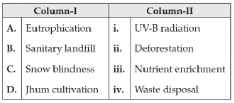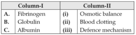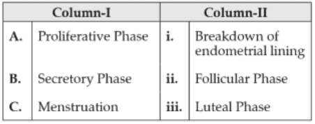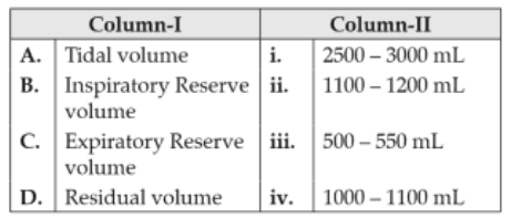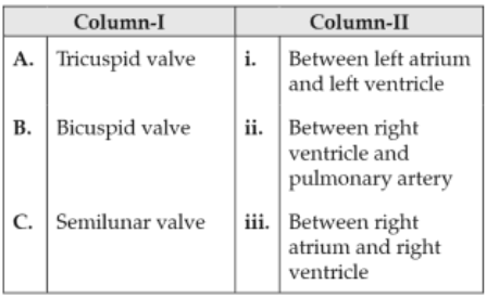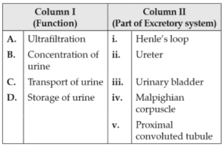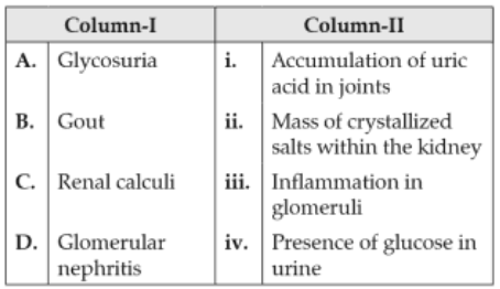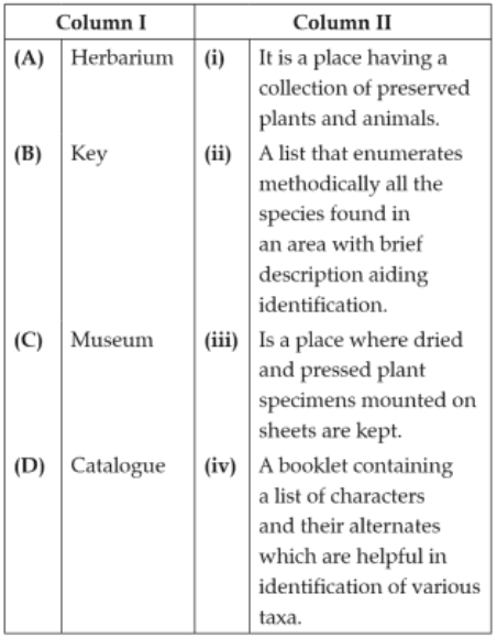 Biology+4 / −1Match the items given in Column I with those in Column II and select the correct option given below :