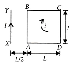 36. A square loop ABCD carrying a current is placed near and coplanar with a long straight conductor XY carrying a current I, the net force on the loop will be