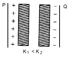 23. Two thin dielectric slabs of dielectric constants K1 and K2 (K1 < K2) arevinserted between plates of a parallel plate capacitor, as shown in the figure. The variation of electric field E between the plates with distanced as measured from plate P is correctly shown by
