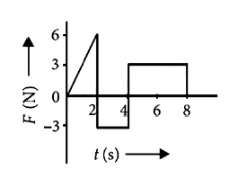 5. The force F acting on a particle of mass m is indicated by the force-time graph shown below. The change in momentum of the particle over the time interval from zero to 8 s is